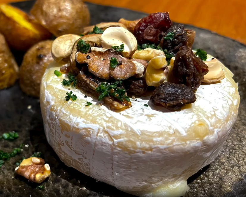 カマンベールの上には様々なナッツや旬のイチヂクなどのドライフルーツを合わせました😆